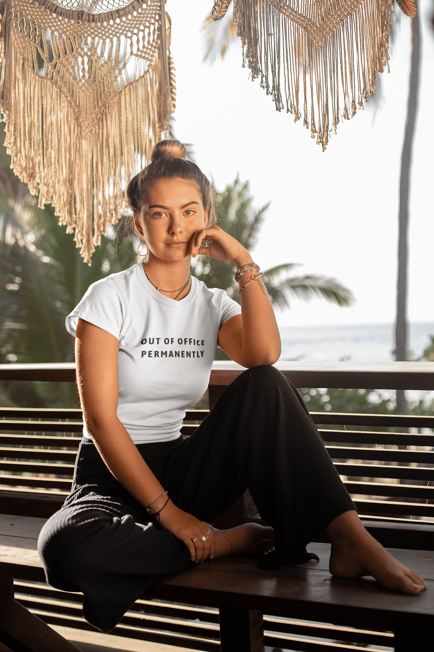 The clean, minimalist “Out of Office Permanently” slogan adds a touch of humor and wanderlust. It’s a conversation starter for every traveler who’s ever dreamed of turning vacation into a lifestyle.